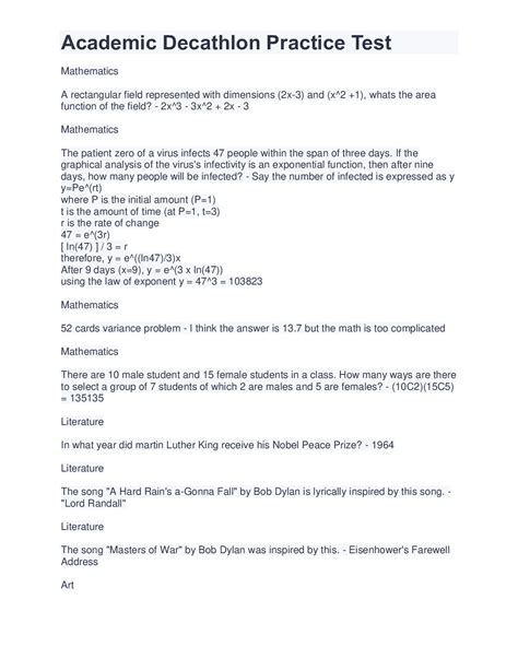 Download online ACADEMIC DECATHLON PRACTICE QUESTIONS mobipocket Google eBookstore